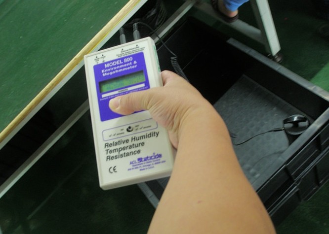 检测人员对周转容器进行检测,在生产车间的生产容器要定期进行防静电指标检测。