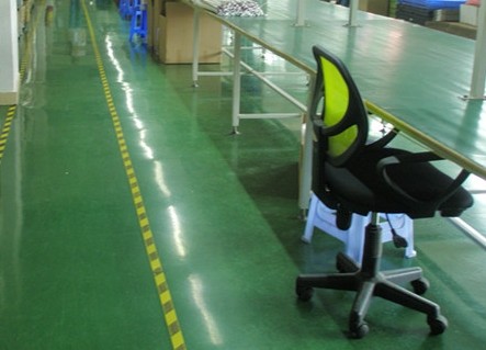 整洁宽敞的生产车间,防静电设施比较欠佳,工人座的不是防静电椅、工人没有穿着防静电服、防静电鞋,不符合电子加工行业标准,要进行改良。