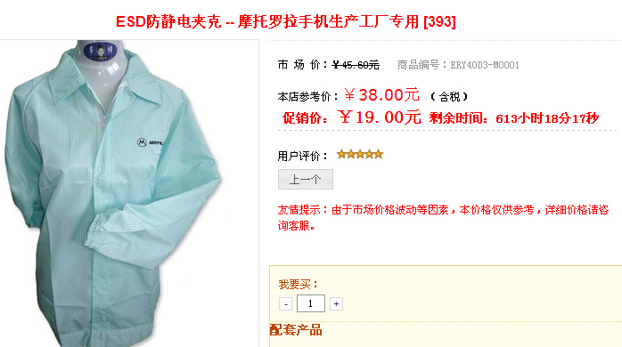小贴士:esd夹克在穿着一段时间之后,需要进行清洗,蚂蚁商城建议您不要自行清洗,最好是送到专业的净化清洗机构进行清洗!!!