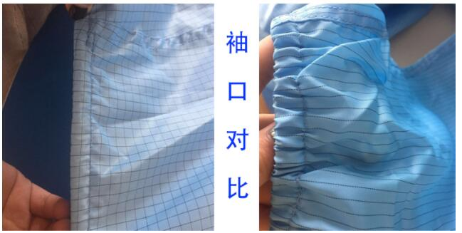 两种面料对比很明显天津实力技术面料的质量胜于网上低价买来的,采用导电丝洁净面料制作很明显,两者对比下来我们是不是更愿意选择质量好一点,价格稍微贵一点的,质量太差的无尘服员工穿过几次后是会存在质量隐患的,影响着产品质量造成损失。