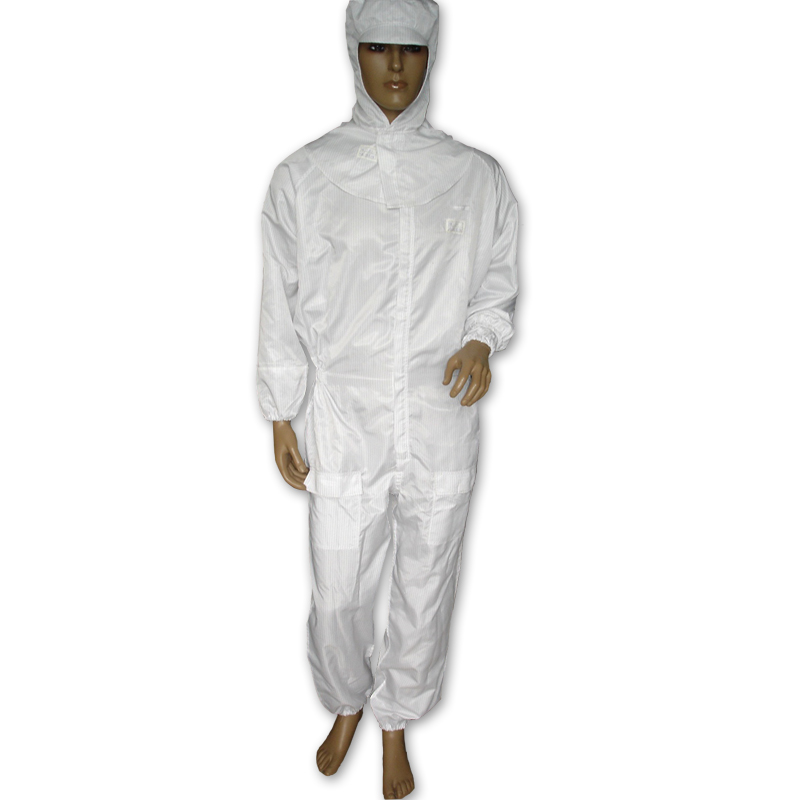 材 质:此款洁净服为ESD连帽连体服(ESD Clothes),其面料采用专用涤纶长丝与高性能永