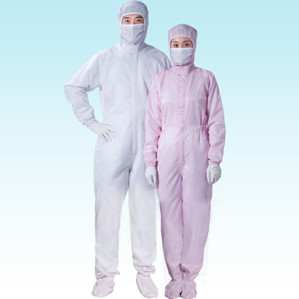 材 质:涤纶长丝+导电纤维 款式说明:可选配口罩、防尘镜和衣袋。 使用区域:100-10000级洁净区9A级或B、C级洁净区) 产品性能:无脱尘、抗静电、耐高温、耐臭氧、透气好、耐久洗、穿着柔软舒适、透气性好。表面电阻系数1*10^6次方至