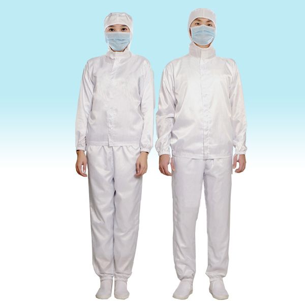 材 质:涤纶长丝+导电纤维 款式说明:衣帽相连,衣裤分开,可选配口罩、手套、高筒鞋、防尘镜和衣袋。 使用区域:100-10000级洁净区9A级或B、C级洁净区) 产品性能:无脱尘、抗静电、耐高温、耐臭氧、透气好、耐久洗、穿着柔软舒适、透气性好。表面电阻系数1*10^6至