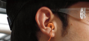 耳道打开后,迅速将搓细的耳塞圆头部分塞入耳朵,耳朵外保留足够部分以便于取出耳塞。