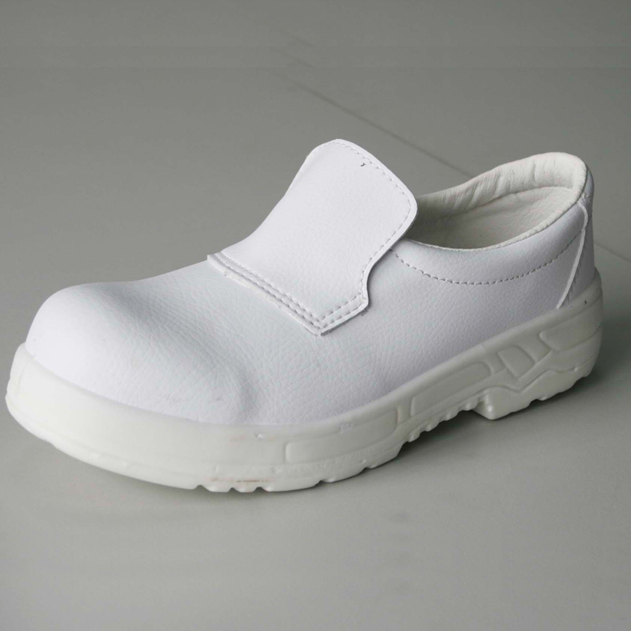 材质:鞋面采用白色压花牛皮,PU双密底,低帮,具有良好的防静电效果。