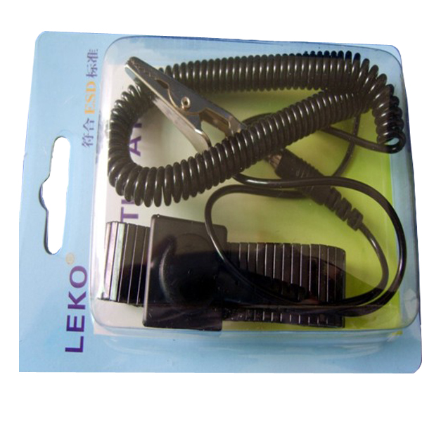 ESD手腕带(ESD wrist strap)组成: 1、卷线:PU材质,黑色; 2、鳄鱼夹:不锈钢活动夹; 3、手环:黑色金属,可调节松紧。 特性:ESD手腕带(ESD wrist strap)通过接地有效的释放人体静电,防止产品不受静电打击。 ESD手腕带一般需要配合 “接地插座”来使用,一个接地插座可接两个手腕带。