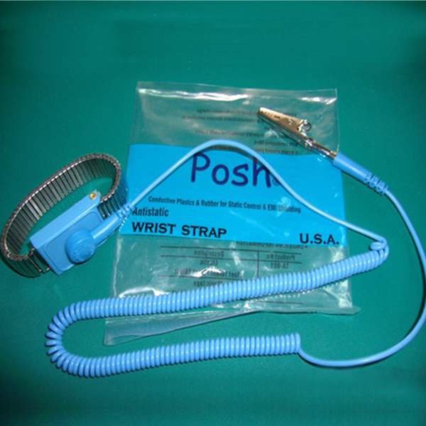 注:ESD手腕带(ESD wrist strap)是一种配戴于人体手腕上,泄放人体聚积静电电荷的器件.它分为有线型、无线型,有金属环和橡筋导电丝混编环,弹簧接地线能经30000次以上环绕试验不断裂。ESD手腕带合扣调节有线型,可有效保护零阻件,免于受静电之干扰,用以泄放人体的静电。松紧带的内层用防静电纱线编织,外层用普通纱线编织。ESD手腕带的原理是通过腕带及接地线将人体的静电导到大地。使用时腕带与皮肤接触,并确保接地线直接接地,这样才能发挥最大功效。