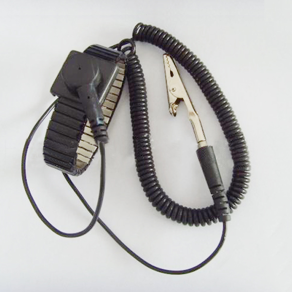 ESD手腕带(ESD wrist strap)组成: 1、卷线:PU材质; 2、鳄鱼夹:不锈钢活动夹; 3、手环:黑色。 特性:ESD手腕带(ESD wrist strap)通过接地有效的释放人体静电,防止产品不受静电打击。 ESD手腕带一般需要配合 “接地插座”来使用,一个接地插座可接两个手腕带。