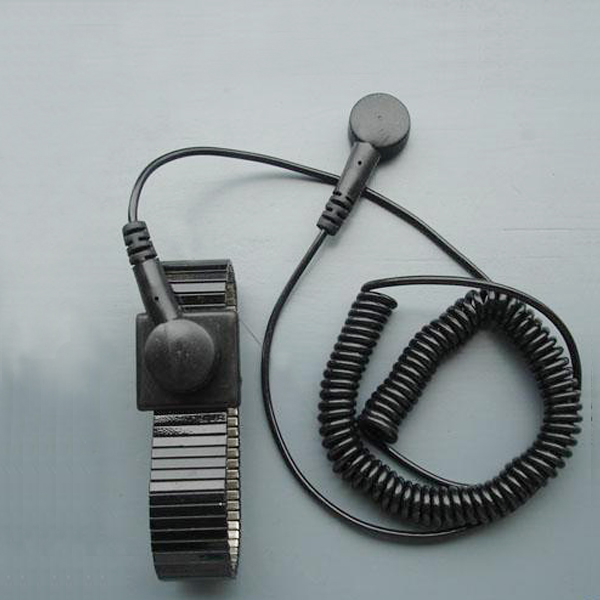 注:ESD手腕带(ESD wrist strap)是一种配戴于人体手腕上,泄放人体聚积静电电荷的器件.它分为有线型、无线型,有金属环和橡筋导电丝混编环,弹簧接地线能经30000次以上环绕试验不断裂。ESD手腕带合扣调节有线型,可有效保护零阻件,免于受静电之干扰,用以泄放人体的静电。松紧带的内层用防静电纱线编织,外层用普通纱线编织。ESD手腕带的原理是通过腕带及接地线将人体的静电导到大地。使用时腕带与皮肤接触,并确保接地线直接接地,这样才能发挥最大功效。