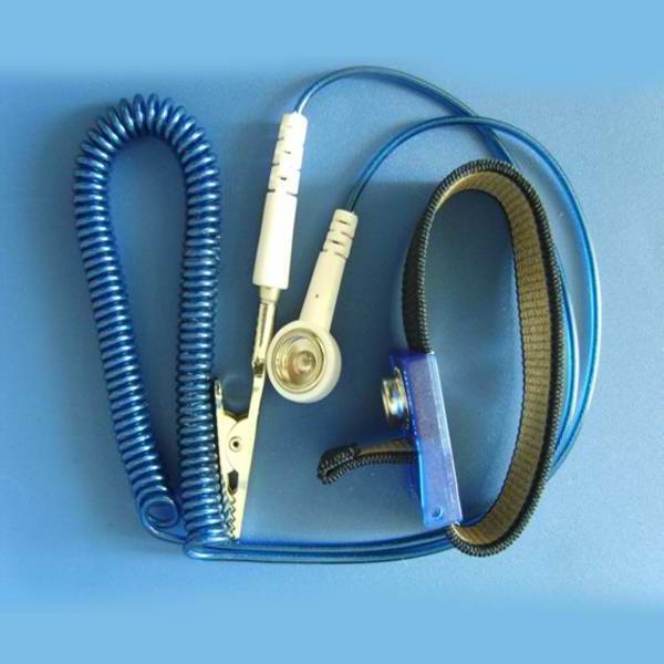 注:防静电手腕带是一种配戴于人体手腕上,泄放人体聚积静电电荷的器件.它分为有线型、无线型,有金属环和橡筋导电丝混编环,弹簧接地线能经30000次以上环绕试验不断裂。防静电手腕带合扣调节有线型,可有效保护零阻件,免于受静电之干扰,用以泄放人体的静电。松紧带的内层用防静电纱线编织,外层用普通纱线编织。防静电手腕带的原理是通过腕带及接地线将人体的静电导到大地。使用时腕带与皮肤接触,并确保接地线直接接地,这样才能发挥最大功效。