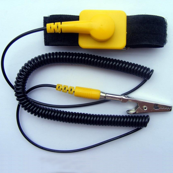 注:防静电手腕带是一种配戴于人体手腕上,泄放人体聚积静电电荷的器件.它分为有线型、无线型,有金属环和橡筋导电丝混编环,弹簧接地线能经30000次以上环绕试验不断裂。防静电手腕带合扣调节有线型,可有效保护零阻件,免于受静电之干扰,用以泄放人体的静电。松紧带的内层用防静电纱线编织,外层用普通纱线编织。防静电手腕带的原理是通过腕带及接地线将人体的静电导到大地。使用时腕带与皮肤接触,并确保接地线直接接地,这样才能发挥最大功效。