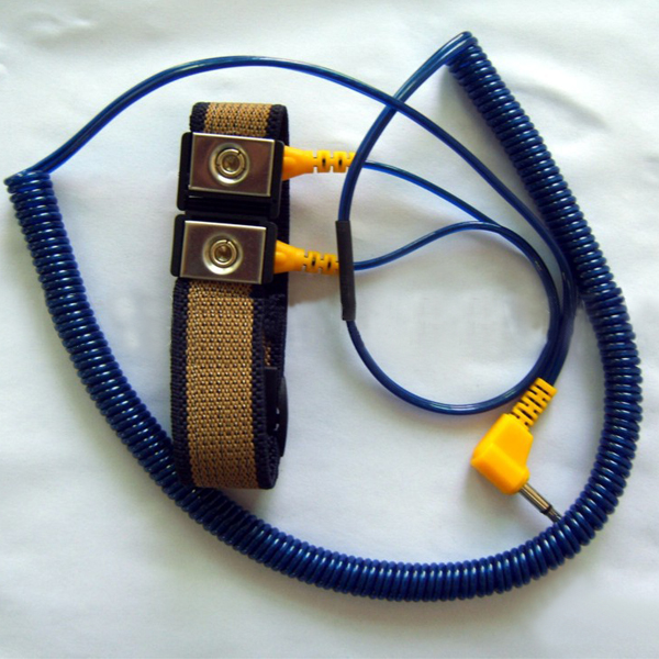 注:防静电手腕带是一种配戴于人体手腕上,泄放人体聚积静电电荷的器件.它分为有线型、无线型,有金属环和橡筋导电丝混编环,弹簧接地线能经30000次以上环绕试验不断裂。防静电手腕带合扣调节有线型,可有效保护零阻件,免于受静电之干扰,用以泄放人体的静电。松紧带的内层用防静电纱线编织,外层用普通纱线编织。防静电手腕带的原理是通过腕带及接地线将人体的静电导到大地。使用时腕带与皮肤接触,并确保接地线直接接地,这样才能发挥最大功效。