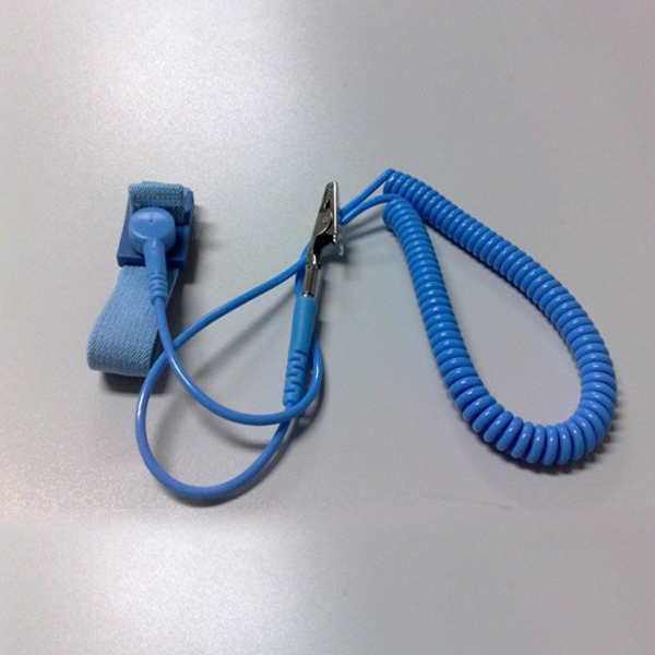 ESD手腕带组成: 1、卷线:高弹性防摇摆,蓝色; 2、鳄鱼夹:不锈钢活动夹; 3、导电纱布:纤细导电纱编织,白纱。