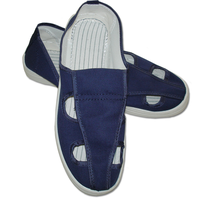 材 质:PVC四孔蓝色帆布面防静电鞋,帆布面,鞋面上有四个孔,鞋底为PVC,具有良好的ESD静电泄放效果。