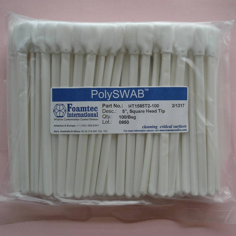 材质:超软泡沫内芯,清洁效率更好。 Part NO.:HT1585T2-100 Desc.:5" Square Head tip 特点:超细纤维织物外层,使难以去除的污点和微粒得以有效的的清除。其效果远高于一般的工业棉签。 包装:在百级无尘净化室内密封包装,100只/包 单位:根 适用范围:手机液晶屏、笔记本液晶屏、硬盘驱动器,医疗仪器,制药,半导体器件,光学镜头,光学纤维,精密仪器等,可确保其最大效果的清洁。
