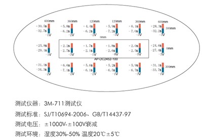 AP-DC2452-100 悬挂式四口离子风机的除静电效果: