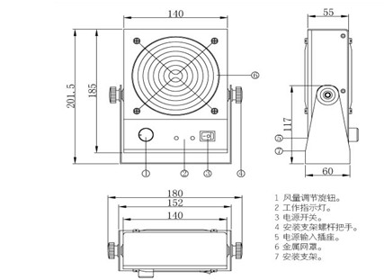 AP-DC2451 台式外置电源离子风机的安装尺寸: