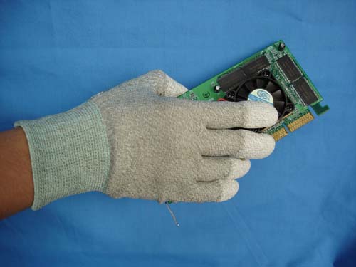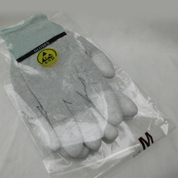 材 质:防静电PU涂指手套是由80%无尘尼龙纱加20%高性能碳纤维导电纱使用机器自动编制而成。