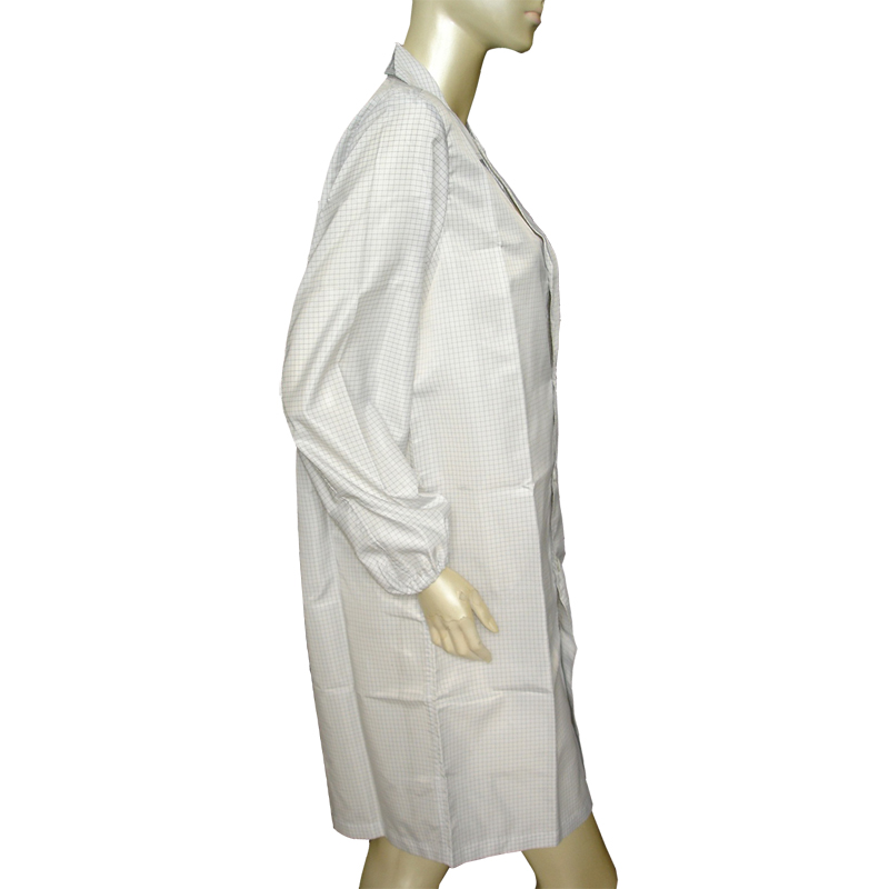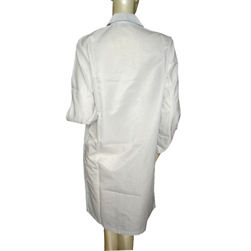 特 性:网格防静电大褂(ESD Clothes)为防止服装上的静电积累,通过导电纤维的电晕放电和泄漏作用消除服装上的静