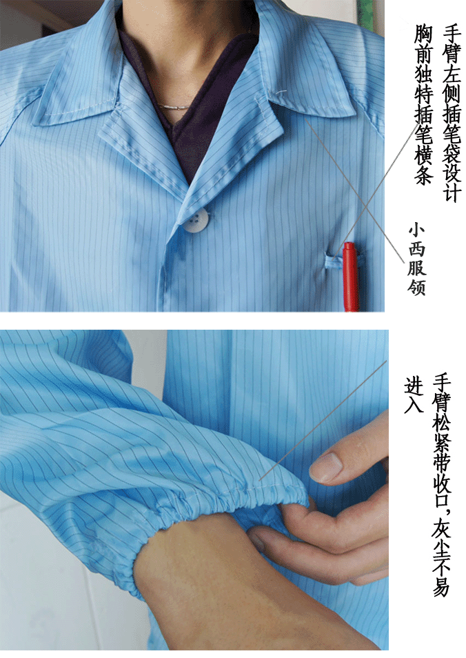 静电,具有优良的防静电、防尘性能。天蓝色防静电大褂耐洗涤,专业洗涤50次抗静电参数不衰减。