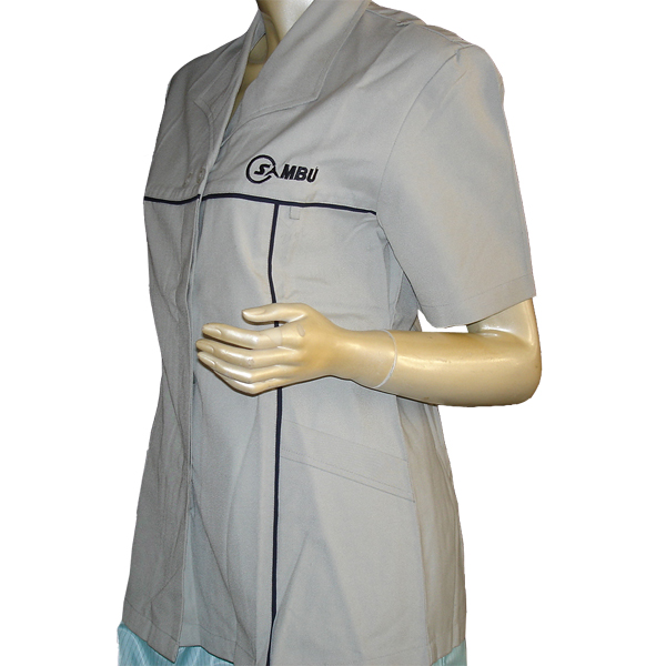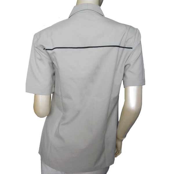 材 质:防静电短袖夹克采用65/35全工艺印染涤棉,并织入进口有机导电纤维,
