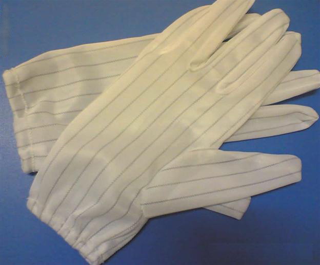 材 质:防静电手套(ESD gloves)材料由聚脂纤维材料构成,加之10mm导电纤维混织而成。