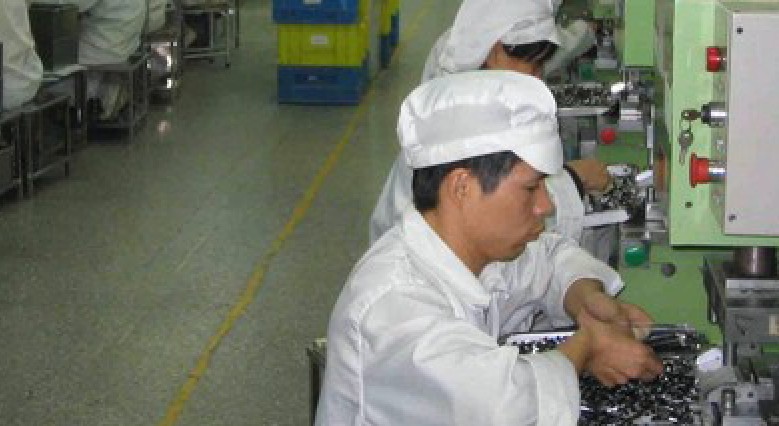 工人车间在操作机械