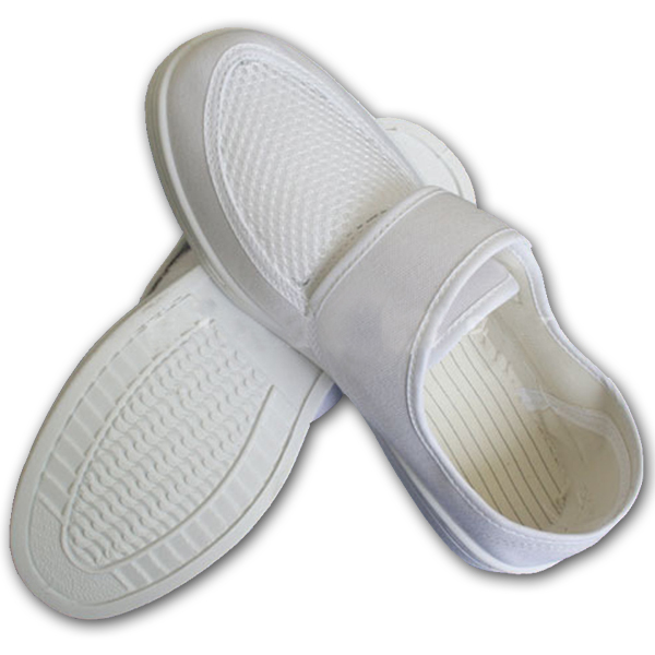 材 质:ESD无尘净化鞋,鞋面为精细人造革,单孔网眼,鞋底为PVC,具有良好的ESD静电泄放效果。