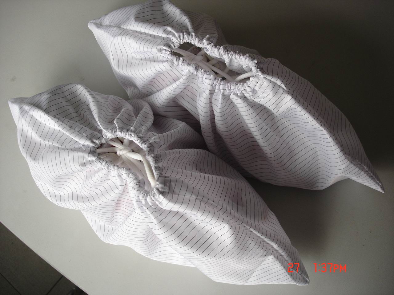 材 质:条纹涤纶无尘鞋套面料采用专用涤纶长丝与高性能永久性导电纤维,导电纤维间距5mm,条纹,