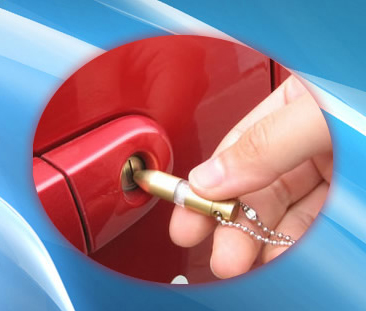 1、将本款静电消除器挂件的任何一端金属部分接近带静电(如车门钥匙孔、车身,金属门窗、金属水管等)物体进行放电,放电时如达到一定电压,会发出桔红色光提示。