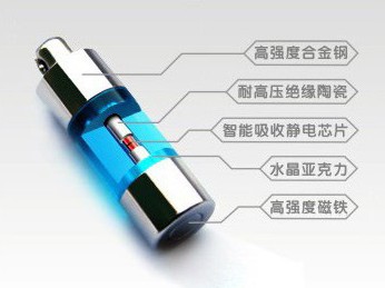 1、本款除静电钥匙扣是接触式消除静电,不需要电池,长期使用。在需要消除静电时,手握本款除静电钥匙扣,用本款除静电钥匙扣的前端接触导体