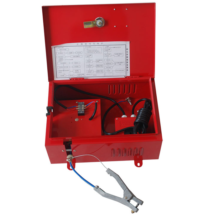 配备防雨外箱,现场固定安装;自动回收电缆线;标配接地夹线长5米,接地线长3米;